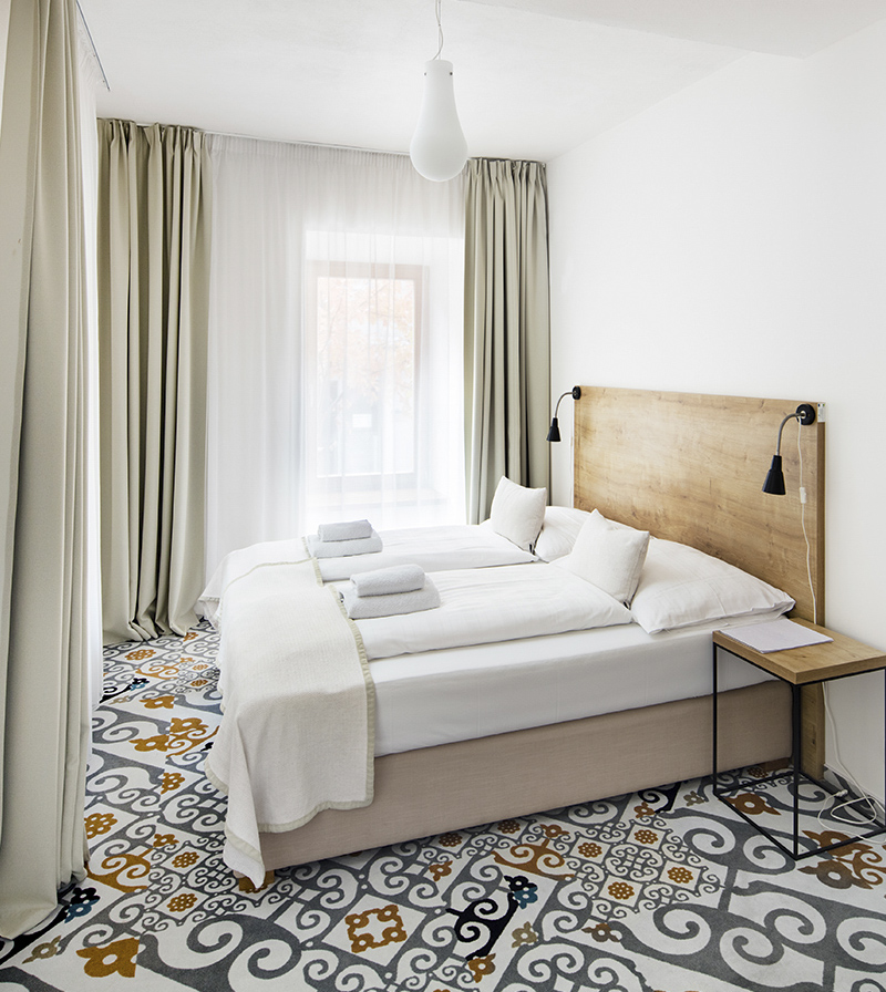 All rooms are modern and functional with design carpets. They have their own sanitary facilities with a shower and a toilet. When choosing equipment and furnishing, we accentuated the use of natural materials in accordance with the overall attitude of the company management to the environment and healthy lifestyle.