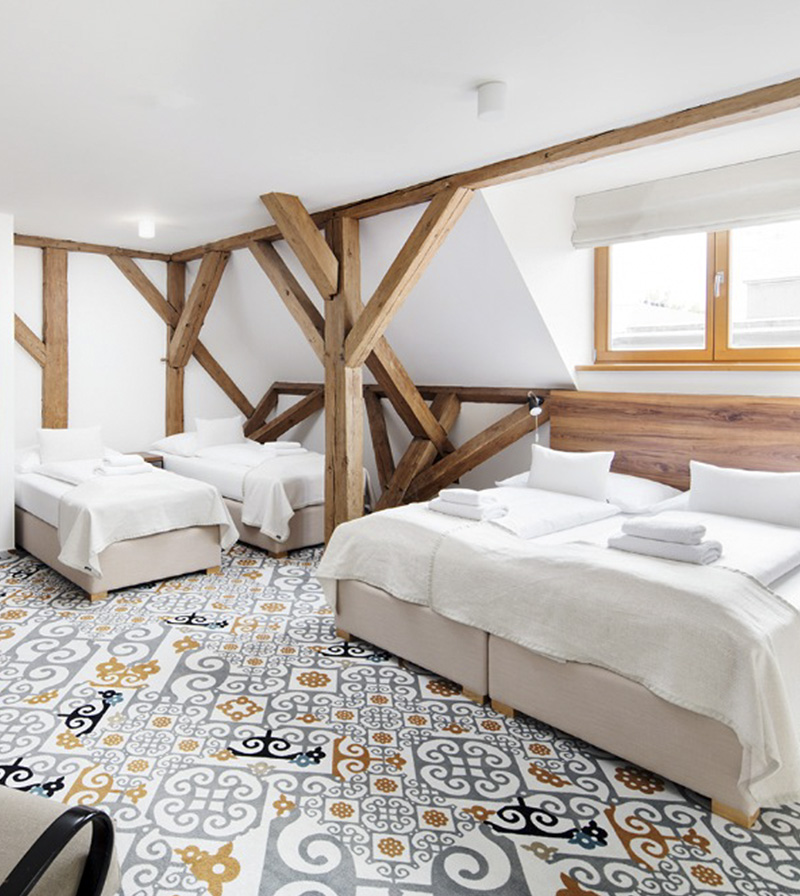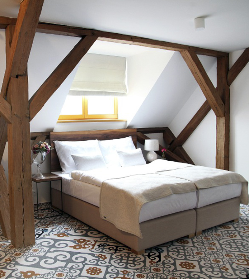 The rooms are on three floors, with attic rooms incorporated in the loft, where the original beams dating back to the 19th century were used to support the style and atmosphere of the rooms. Our guests can admire the top quality work of the past craftsmanship.